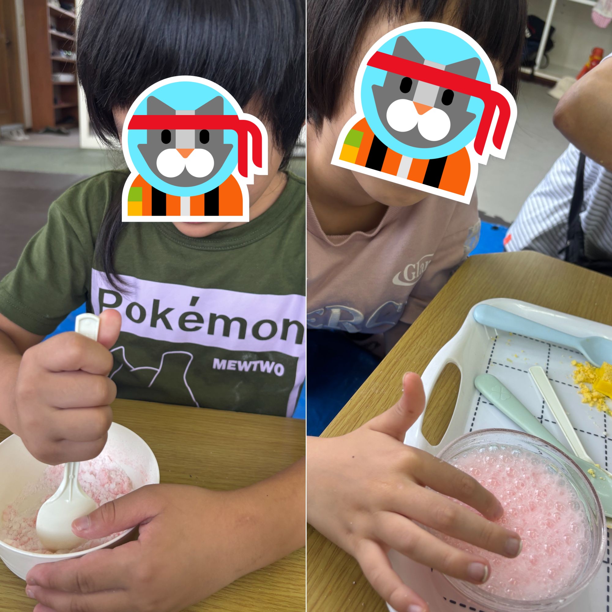 30日は、おもちのスライムで遊びました。おもちのような感触に子ども達も興味津々!