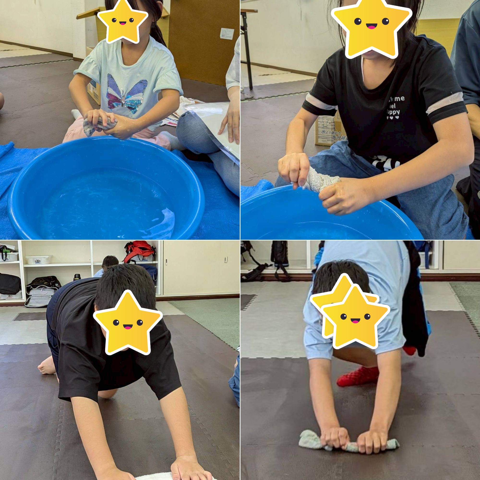 拭き掃除 9/30のSSTは掃除の仕方で拭き掃除(雑巾の使い方)の勉強をしました。 雑巾の絞り方を見て、実際に絞ってみて水が垂れないかチェックし、 最後はみんなで床掃除をしました。よーいどんの合図で子どもたちは一斉に駆け出しました。 見事に床はピカピカになりました。
