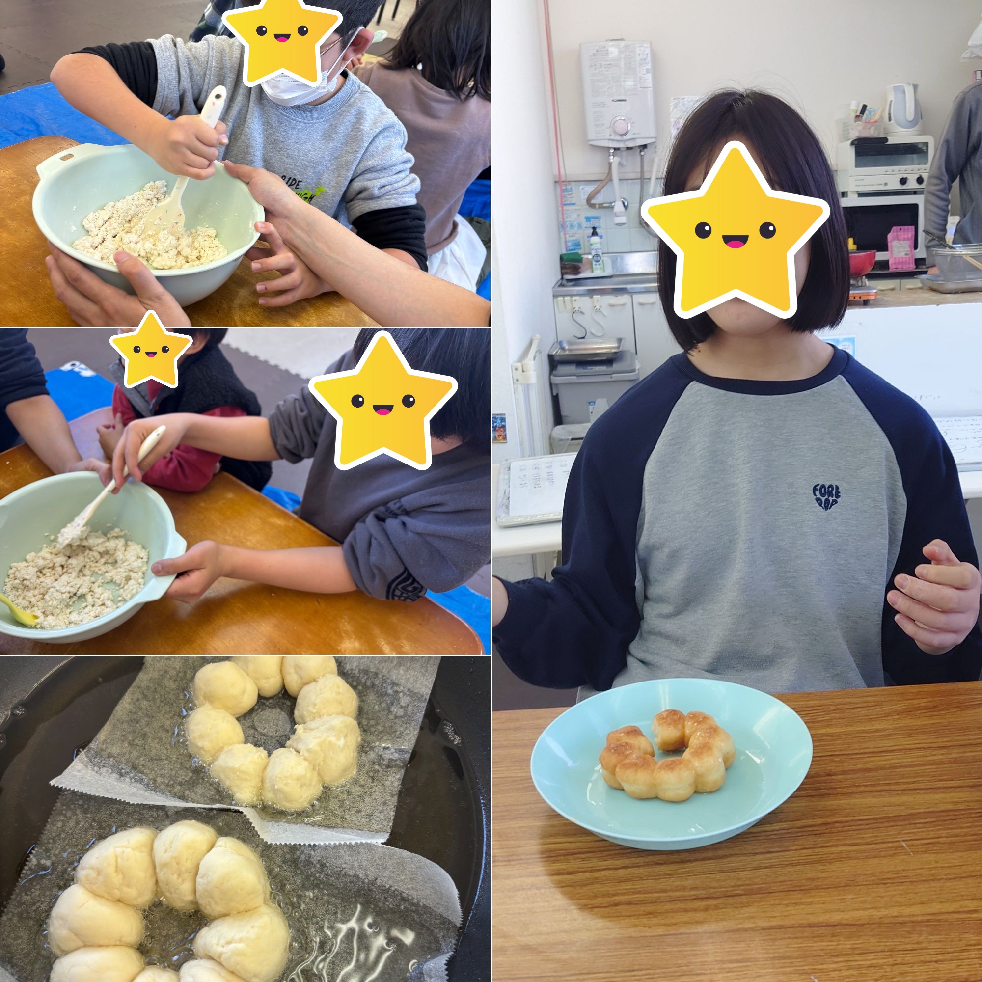 1月17日ポンデリング作り 1月17日は、みんなで「ポンデリング作り」に挑戦しました! ひとつずつ丁寧に生地を丸めて、上手につなげ合わせれば……オリジナルのポンデリングが完成! 出来立てを食べてみると「もちもちしてておいしい!」と、大満足のひとときになりました。